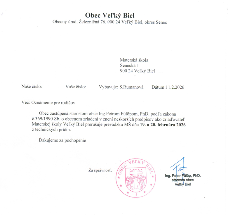 MATERSKÁ ŠKOLA SENECKÁ 1, 900 24 VEĽKÝ BIEL