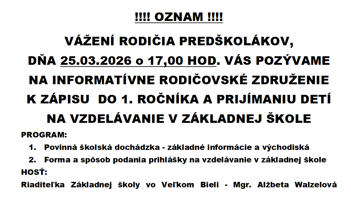 Vážení rodičia,
